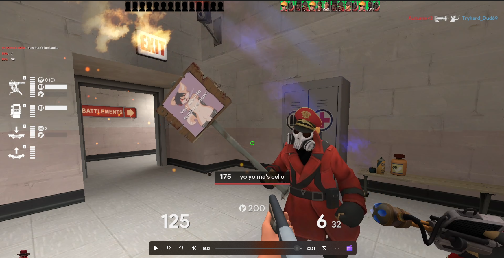 Steam name: yo yo ma's cello Steam ID32: STEAM_0:1:114476295 Server: US 2Fort Links: https://hlstats.panda-community.com/hlstats.php?mode=playerinfo&player=1464256 Rules broken: 1C Evidence: