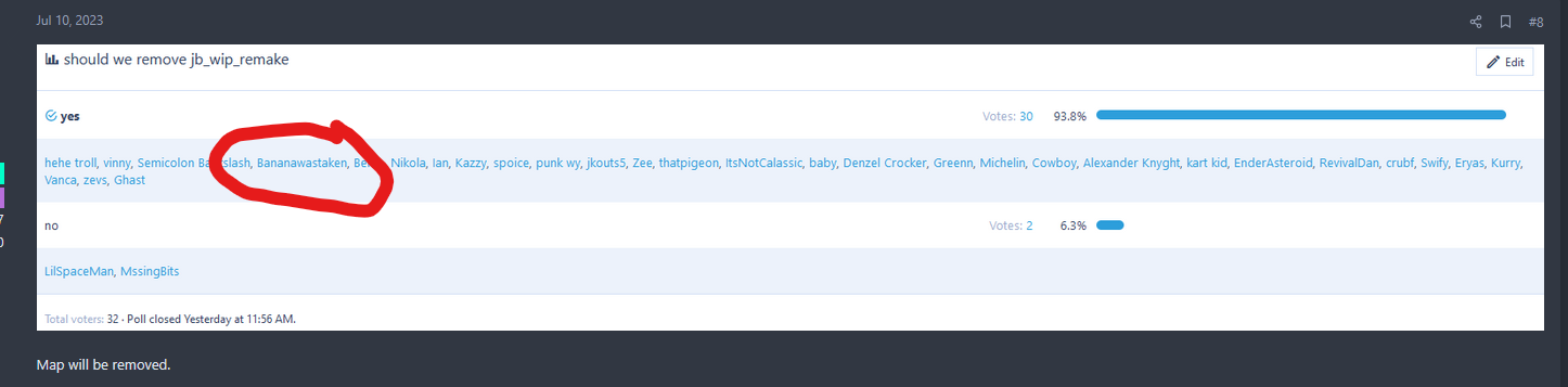 Let the community drive this event, not the admin team. I suggested a map that wasn’t even considered. Why was bunker on that list and not wip? Literally nobody has nostalgia for bunker. It was never a map that was ever playable? The original WiP was in rotation for how many years? That’s a playable map!