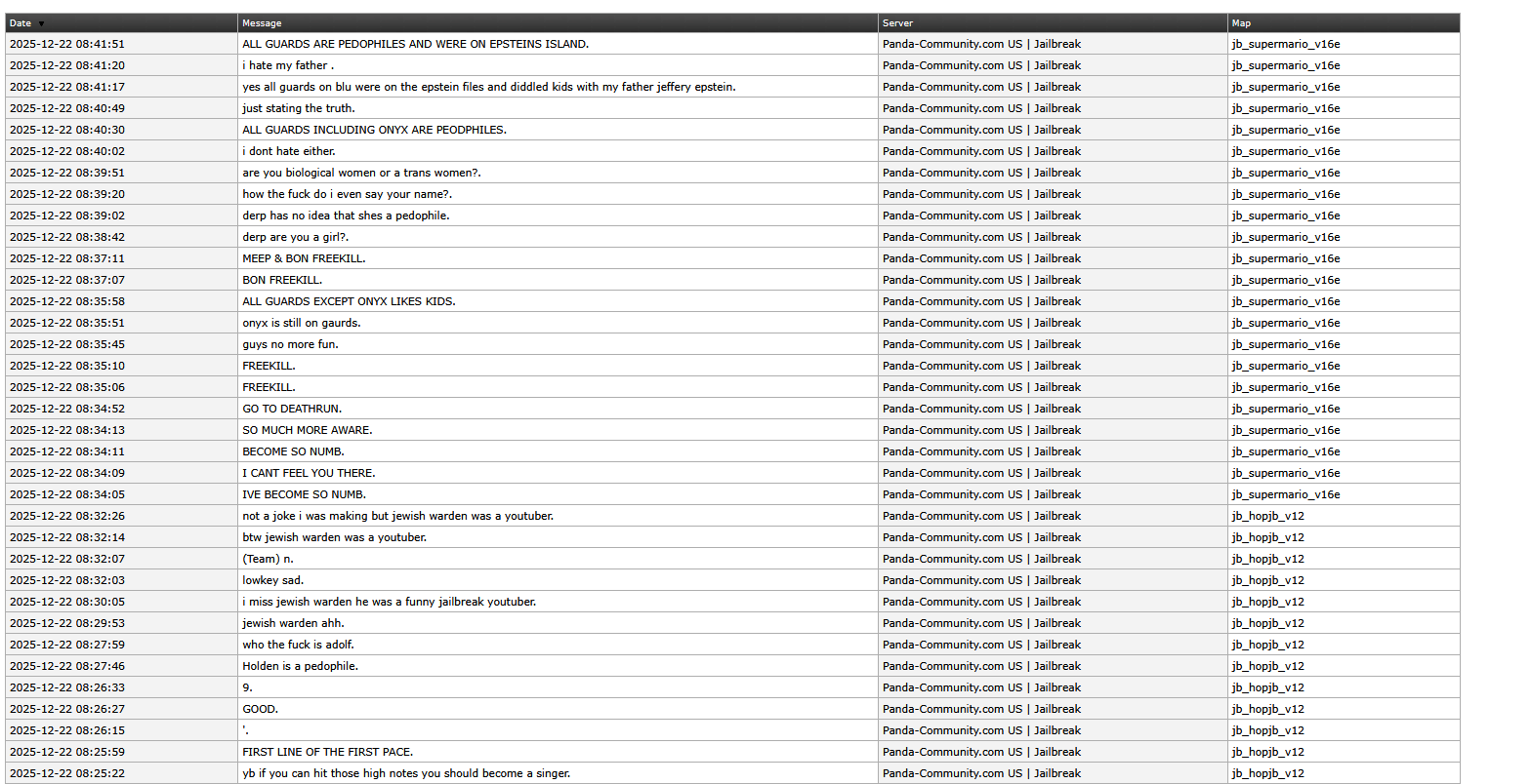 What server game mode is the report concerned with? jailbreak
