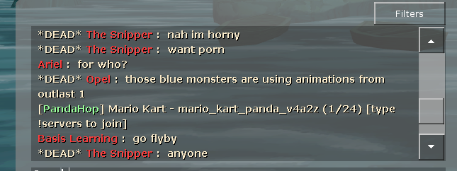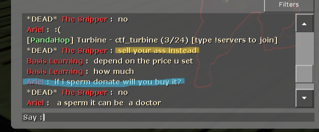 Who are you reporting? Ariel : STEAM_0:1:570940616 , The Snipper : STEAM_0:1:527482066