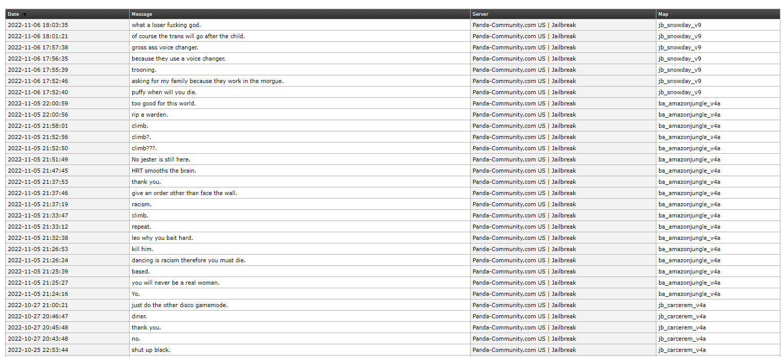 Any other proof you have https://hlstats.panda-community.com/hlstats.php?mode=chathistory&player=2357115