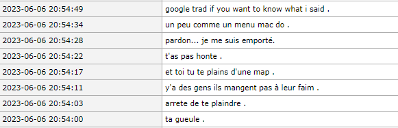 He kept spamming despite being asked multiple times. He did keep talking french so I've attached that screenshot.