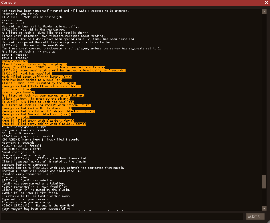 What server game mode is the report concerned with? US Jailbreak