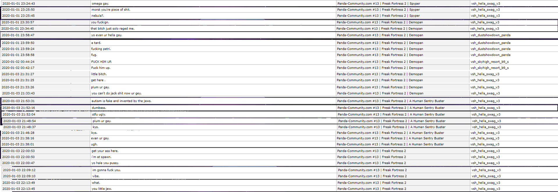 - Evidence: https://hlstats.panda-community.com/hlstats.php?mode=chathistory&player=243049&page=1