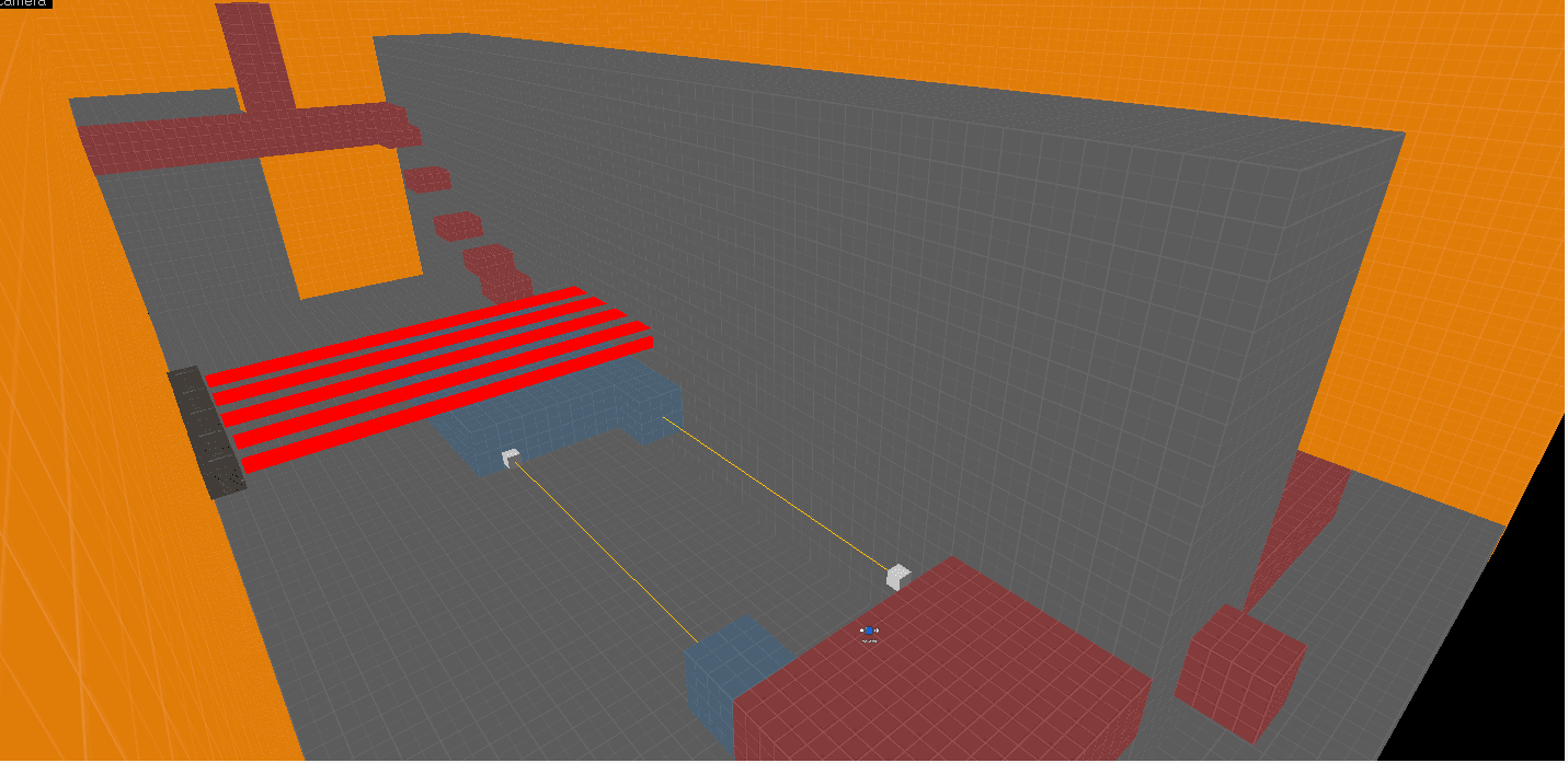 Next I added teleporters to second floor only blues can go through blue side teleports but anyone can go through red side
